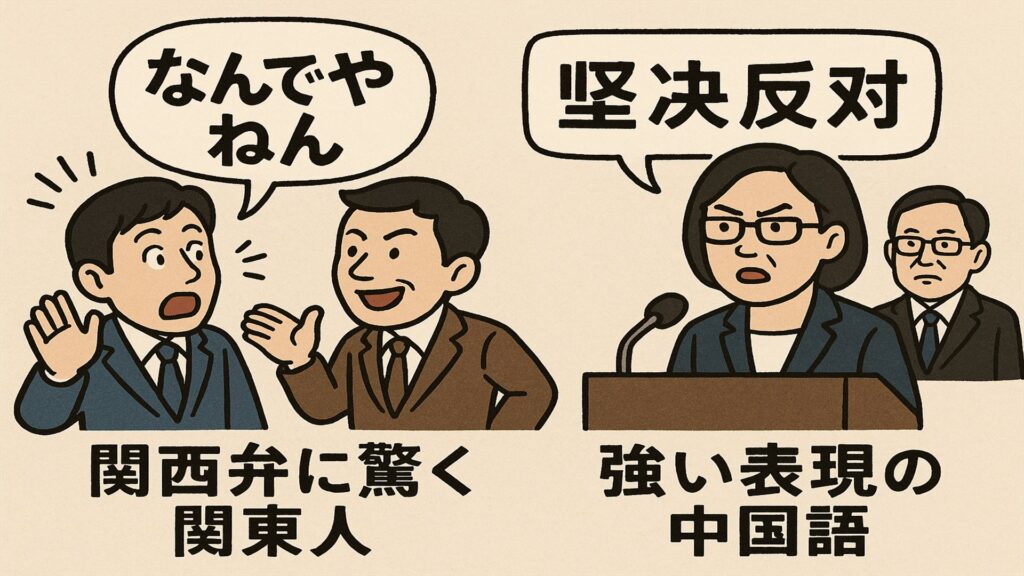 また、日本の一部メディア・政治家が“脅威強調”の文脈で過激な訳語を用いるケースもあり、これが印象をさらに強めます。加えて、日本語の公文書表現は「断固として」「断じて容認しない」など日常ではほぼ使われない硬い語彙が多いため、自然と厳しく聞こえる構造があるのです。