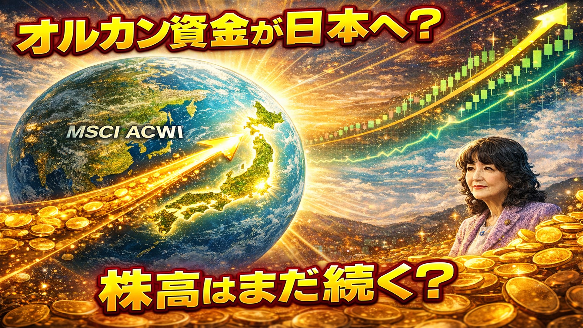 加えて、新NISAを通じたオルカン人気によりパッシブ資金の流入が膨らめば、指数リバランスを通じて自動的に日本株へ資金が配分される構図が強まり、株高→時価総額拡大→ウェイト上昇という好循環が生まれる可能性があります。