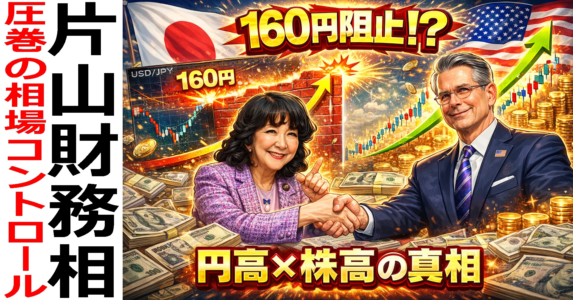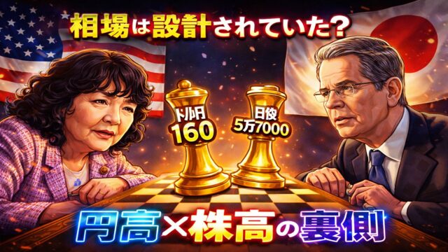 そこに浮かび上がるのが、片山財務大臣の存在です。ベッセント財務長官との緊密な協調、矢継ぎ早の市場けん制、そしてレートチェックや口先介入を通じて意識づけられた160円という明確な“見えない壁”。円安を抑えつつ株高を維持するという難しいバランスは、単なる市場の気まぐれではなく、外交と政策の積み重ねによって形づくられた可能性があります。