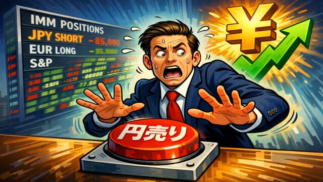 まず最大の短期要因は、投機筋の円売りポジションの巻き戻しです。選挙前、海外の短期筋は「高市圧勝=円安」と見て円売りポジションを積み上げていました。しかしCFTCのIMM統計では、2月3日終了週時点で円のネットショートは約1万9000枚水準まで縮小し、前週比で1万4000枚超減少したと報じられています。想定以上の圧勝で材料出尽くしとなり、積み上がっていた円売りが一気に解消されたことが、円高の直接的なドライバーとなりました。