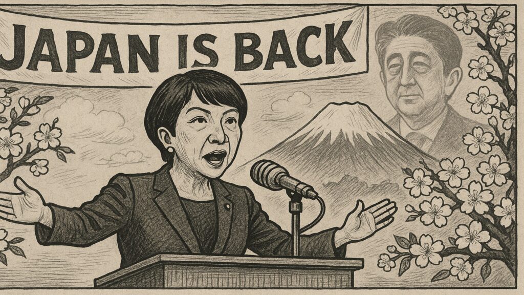 そして、会見を象徴する一言が「Japan is back」でした。これは、安倍元首相がかつて国際社会に放った言葉であり、「日本を取り戻す」というスローガンと並んで記憶に残るものです。高市氏が同じ言葉を掲げたことは、まさにアベイズムの継承者であることを明確に示すものでした。